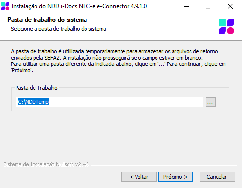 Se desejar, altere o local do diretório de trabalho do sistema e clique em Próximo.