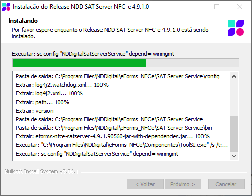 Na tela abaixo, o usuário acompanhará o andamento da instalação, e deverá esperar completar toda a barra de progresso para uma instalação completa.