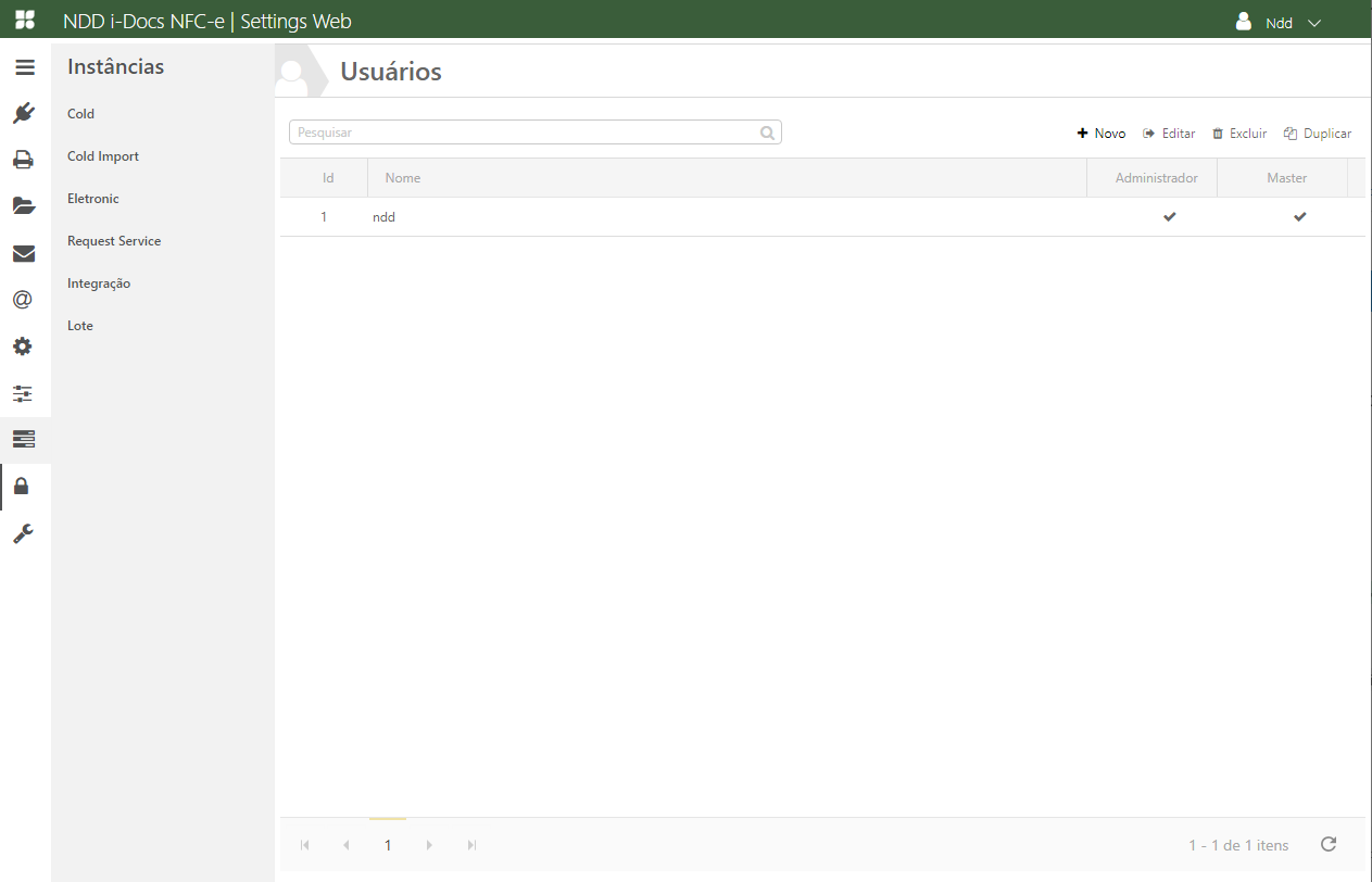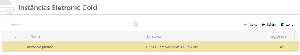 Através dessa área é possível realizar os cadastros referente as instâncias da solução NFCe, sendo estes: Cold, Cold Import, Eletronic, Request Service e Integração.