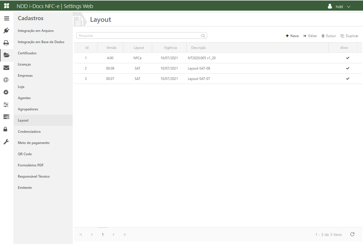 Acesse o e-Connector Settings e na área de cadastros, clique em Layout. A seguinte tela é apresentada: