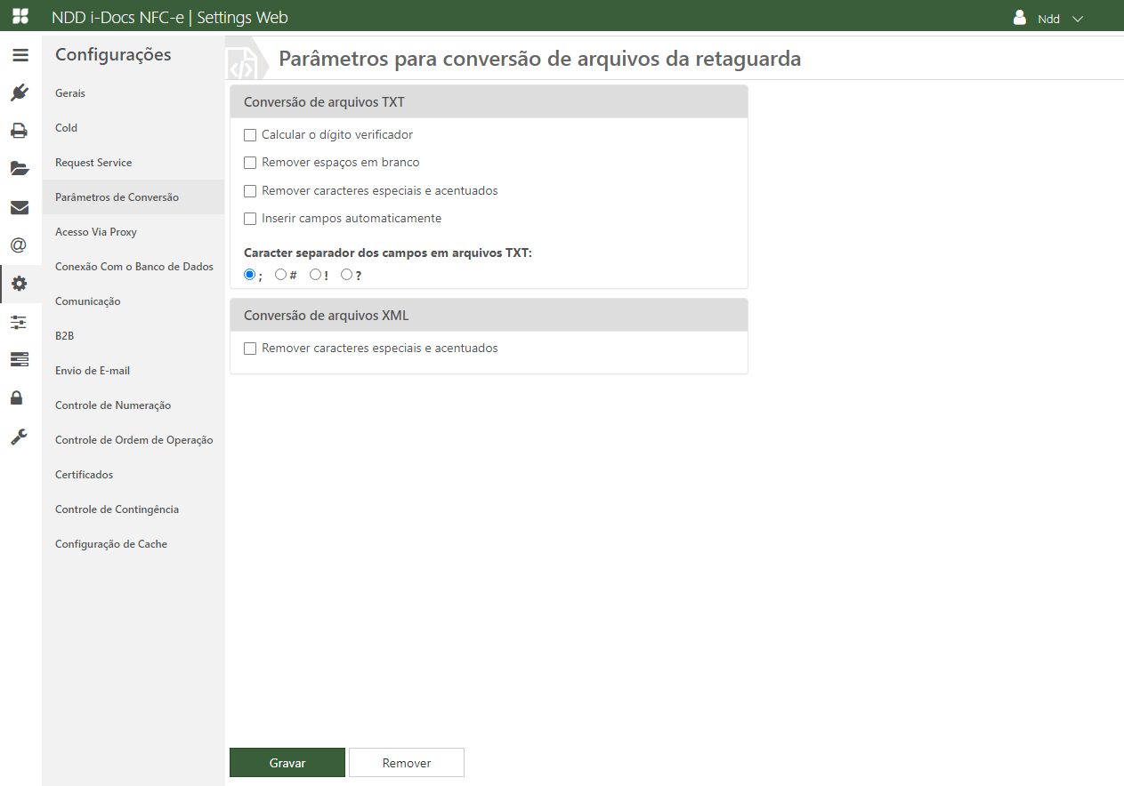 ✓ Calcular o dígito verificador: O dígito verificador é um parâmetro usado no momento da conversão de TXT para XML, ao habilitar esta opção, o cálculo é feito automaticamente;