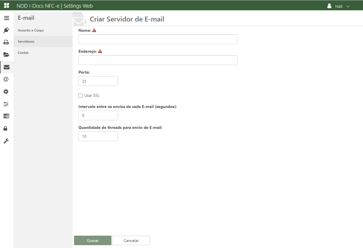 ✓ Nome: Nome de identificação do Servidor de e-mail;