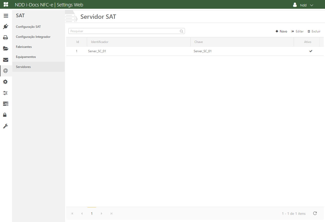 ✓ Identificador: Nome Identificador do Servidor SAT;