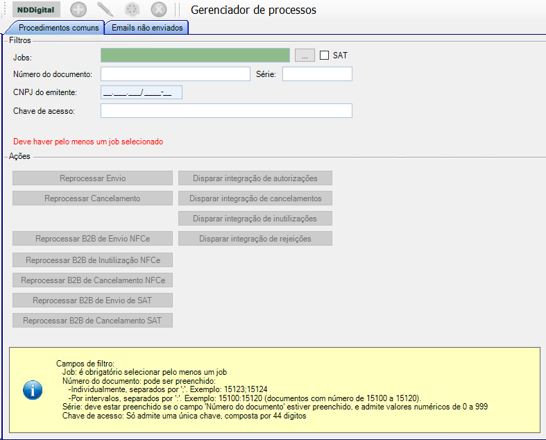 Com esta opção é possível criar processos de integração via Connector Settings, mesmo quando o documento desejado não estiver mais na tabela de integração do NFCe, onde para cada nova solicitação será criado um novo processo de integração.