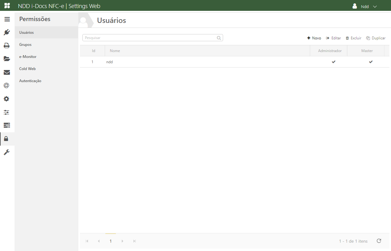 Acesse o e-Connector Settings e na área de Permissões, clique em Usuários. A seguinte tela é apresentada:
