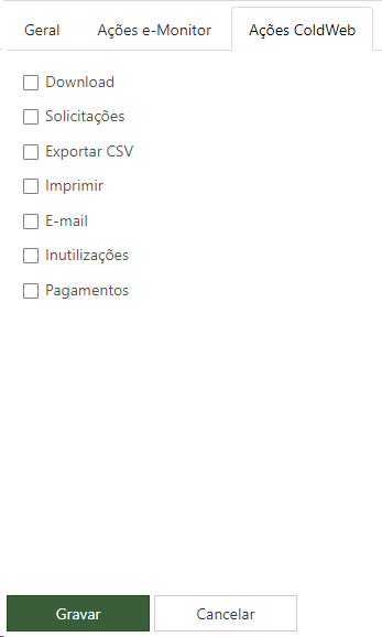 Marque as ações que este usuário irá possuir ao acessar o e-ColdWeb.