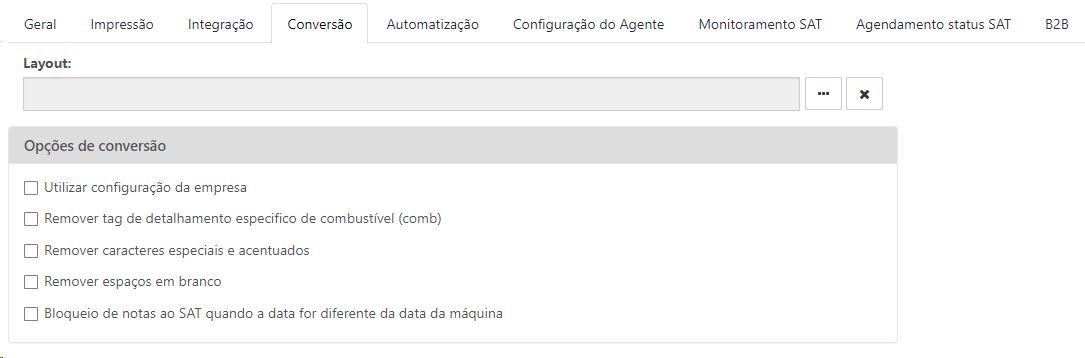 ✓Remoção da tag de detalhamento específico de combustível (comb): Fará a remoção automática da tag comb caso esta opção seja marcada;