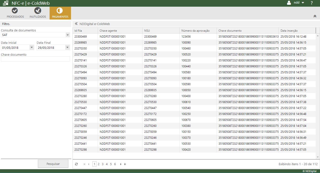 A seguir é apresentado as informações apresentadas ao acessar o Cold, onde são mostrados todos os documentos vinculados aos pagamentos finalizados em POS e TEF.