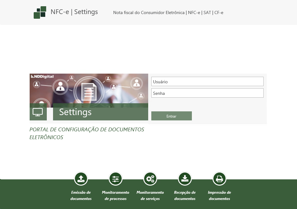 Através do Settings Web é possível realizar toda a configuração da solução NFCe, conforme a necessidade e o cenário de cada cliente, as quais podem ser acessadas através das seguintes áreas: