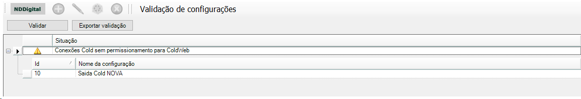Clique em VALIDAR, irá carregar na tela todas as situações mapeadas que necessitam de alguma configuração ou ajuste.