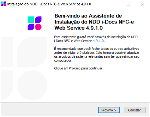 Execute o arquivo de instalação do Web Services NFC-e disponibilizado pela NDDigital. Você também pode fazer o download dos instaladores acessando o site da NDDigital, efetuando seu cadastro de usuário. Para isso, acesse http://ndd.com.br/.