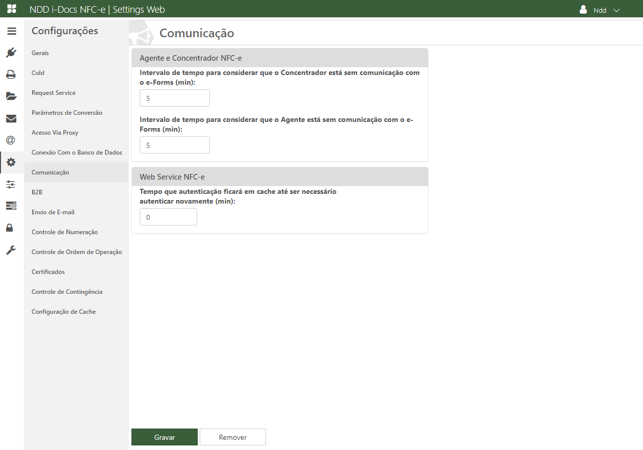 ✓ Intervalo de tempo para considerar que o Concentrador está sem comunicação com o e-Forms (min);