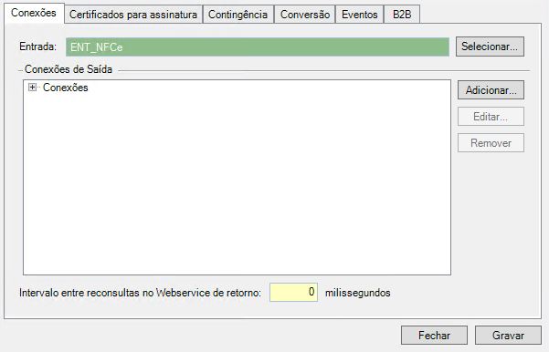 ▪Intervalo entre reconsultas no Webservice de retornos (ms): Este campo determina o intervalo de tempo que o sistema irá consultar um determinado lote na sefaz.