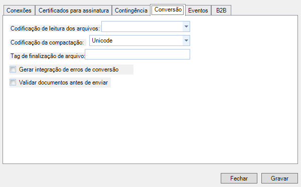 ▪Codificação de leitura dos arquivos: Selecione a codificação de caracteres utilizada pelo arquivo gerado pelo ERP.