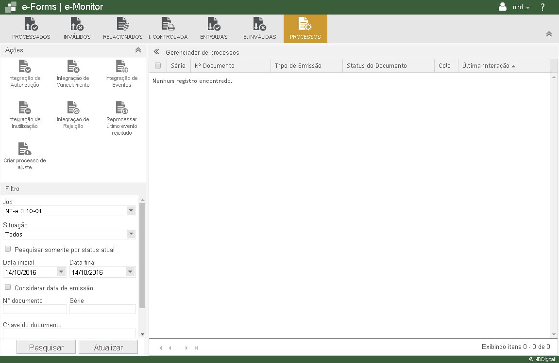 Nesta aba são exibidos todos os documentos processados pela solução onde será possível redisparar as integrações para o ERP.