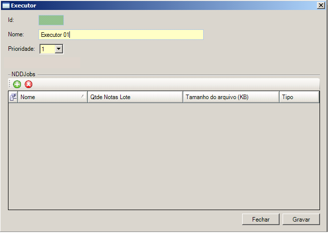 . Se necessário vincular mais de um Job por vez, poderá selecionar vários Jobs para adicionar ao executor utilizando a tecla Ctrl. Ao tentar ligar um job NFe/CTe/MDFe a um executor de saída, caso o job possua conexão de entrada baseada em banco de dados, só poderá ser adicionado ao executor se tiver a chave do job preenchida.