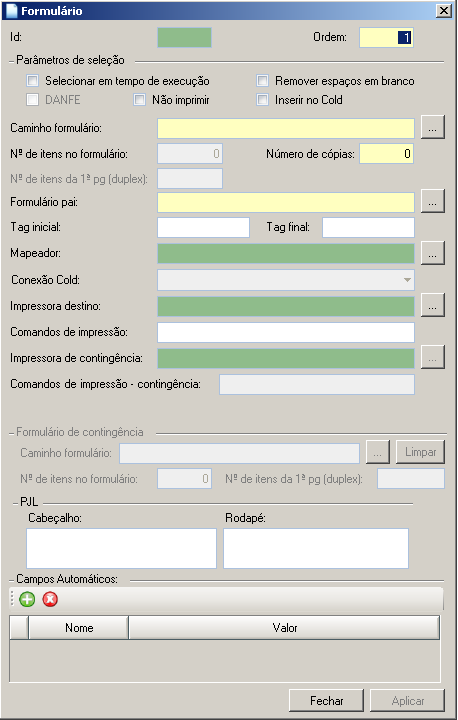 16.O campo Ordem é utilizado para ordenar os formulários na geração do XMLDATA.