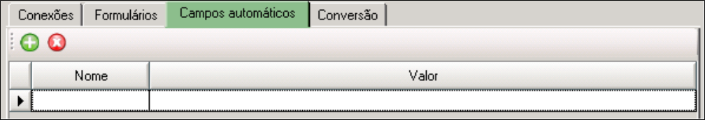 . Será exibida uma nova linha no grid, permitindo inserir Nome e Valor para os campos. Clique em Aplicar para concluir a configuração.