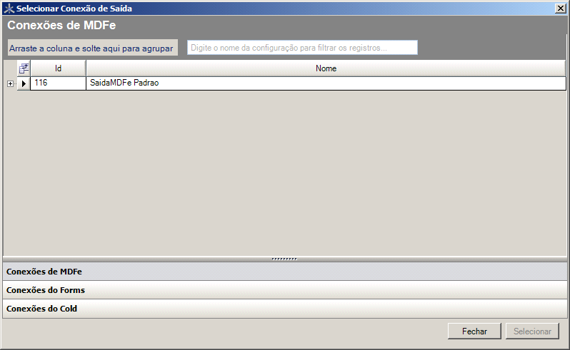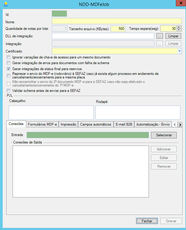 Como está sendo configurado um Job do tipo MDF-e, a primeira conexão selecionada deverá ser a conexão de saída MDF-e.