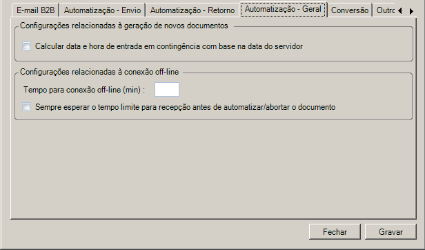 •Automatizar a geração de contingência para documentos pendentes de envio abortados: Quando marcada irá criar um novo documento em substituição de um documento pendente de envio que tenha sido abortado.