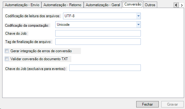 •Gerar integração de erros de conversão: essa opção poderá ser utilizada quando for necessário gerar retorno detalhado ao ERP, na ocorrência de um erro no processo de conversão de arquivos TXT, oferecendo ao usuário a possibilidade de correção das inconsistências de forma automatizada, ou simplesmente gerar dentro de um formato pré-definido uma lista com todas as inconsistências presentes no arquivo.