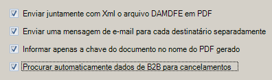 As opções presentes na aba de B2B estão interligadas, verificar cuidadosamente todas as opções marcadas ou selecionadas para o correto recebimento do e-mail com os arquivos desejados. |