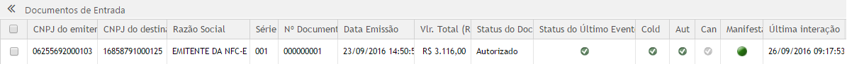 Para documentos com status de autorizado, basta selecionar os documentos desejados e executar a ação Confirmar operação, na qual será gerado o evento de Confirmação da operação, ou seja, será confirmada a operação pelo destinatário, sendo registrado na SEFAZ e vinculado ao documento NF-e. Será exibida no e-Monitor uma imagem verde na coluna Manifestação informando que o evento realizado foi de Confirmar operação, conforme mostra a imagem abaixo: