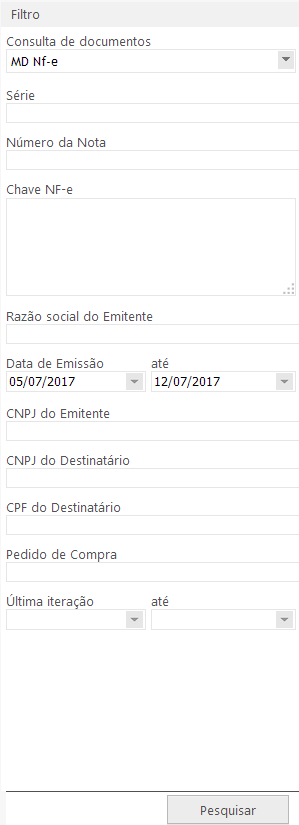 •No campo Última iteração até, será utilizado para filtrar a última modificação do documento. Caso seja informada a última iteração juntamente com a data de emissão, o filtro buscará os documentos dentro do período configurado, prevalecendo a iteração do documento.