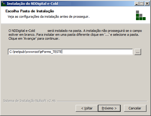 Caso altere o local da instalação é necessário informar um caminho diferente daquele que está sendo utilizado pelo e-Cold.