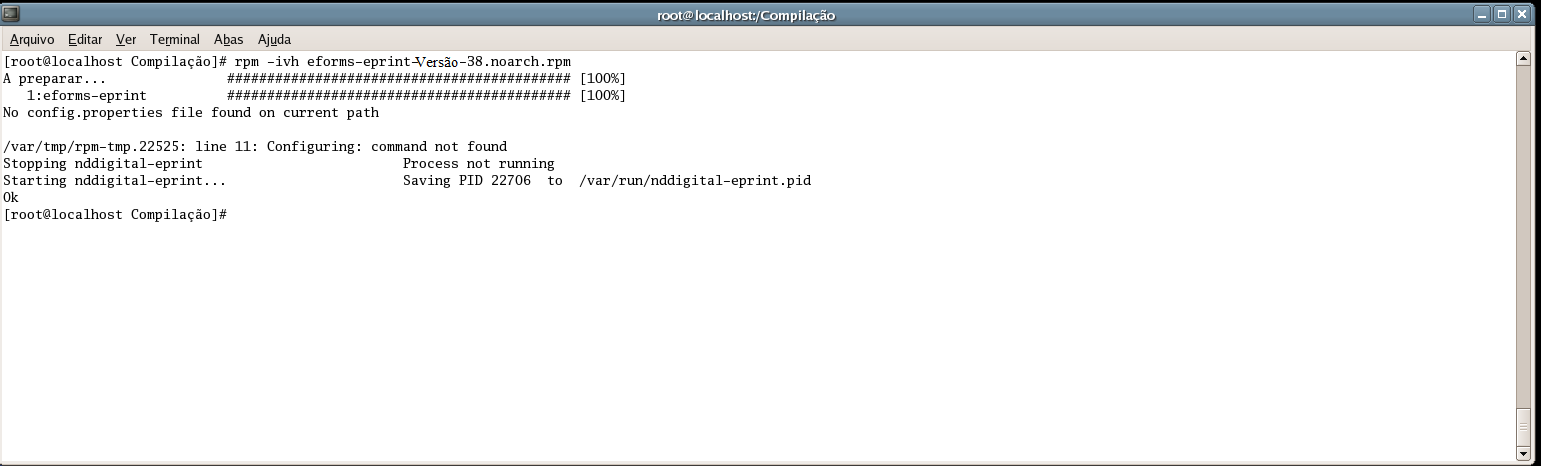 Linux RedHat: rpm -ivh eforms-eprint-Versão-38.noarch.rpm