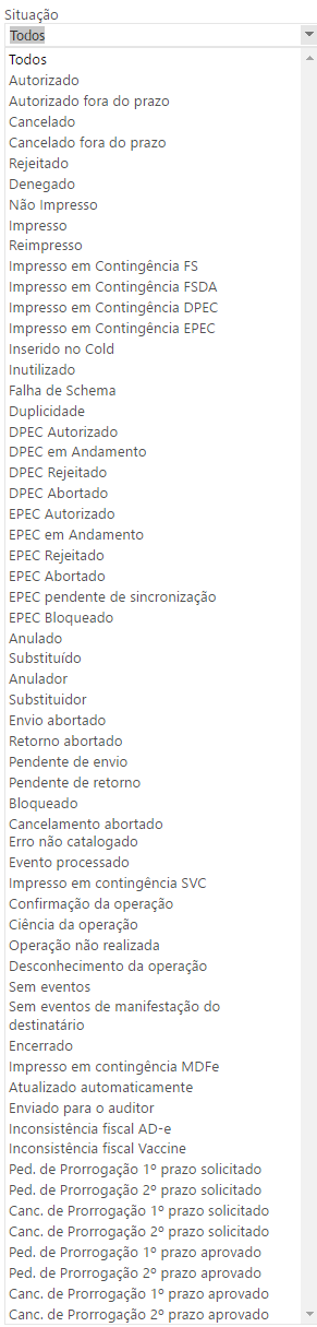 Todo documento entrará no sistema com a situação Pendente de envio, mesmo que já tenha sido processado anteriormente. Esta situação prevalecerá na visualização do e-Monitor somente quando o documento não possuir status de: Autorizado, Cancelado, Inutilizado ou Denegado. Caso o documento esteja com outros status, por exemplo, o status Rejeitado, esta situação prevalecerá.