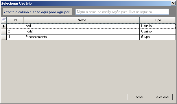 "Usuários/Grupos" para selecionar o usuário ou grupo à conceder a permissão para os campos restritivos em questão.