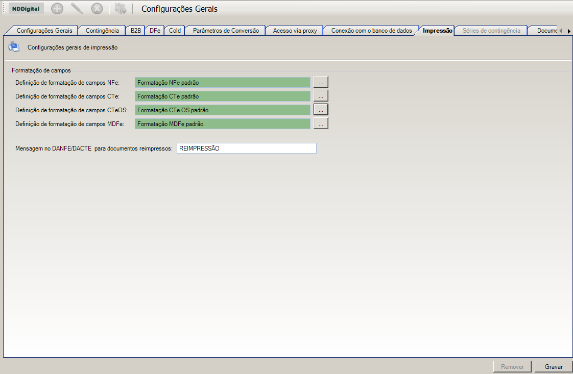 i.Mensagem no DANFE/DACTE para documentos reimpressos: Exibe mensagem no DANFE/DACTE que o documento é uma reimpressão.