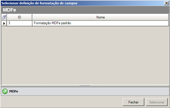 para selecionar uma Formatação de Campos MDF-e previamente cadastrada. A imagem abaixo será exibida: