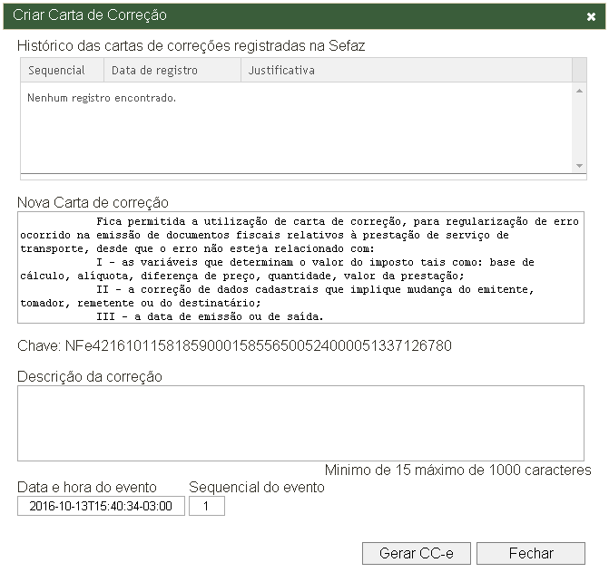 •Será visível a chave do documento ao ser considerada para a emissão da CC-e;