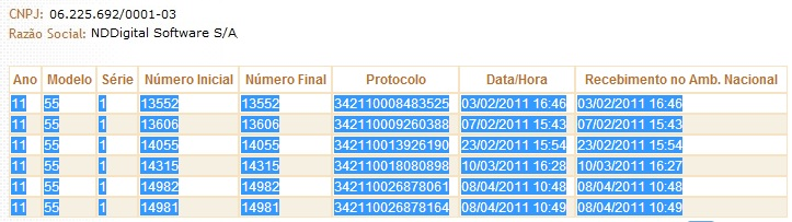 d.Aparecerá um grid com todas as inutilizações homologadas para o CNPJ e ano em questão. Segue abaixo o grid: