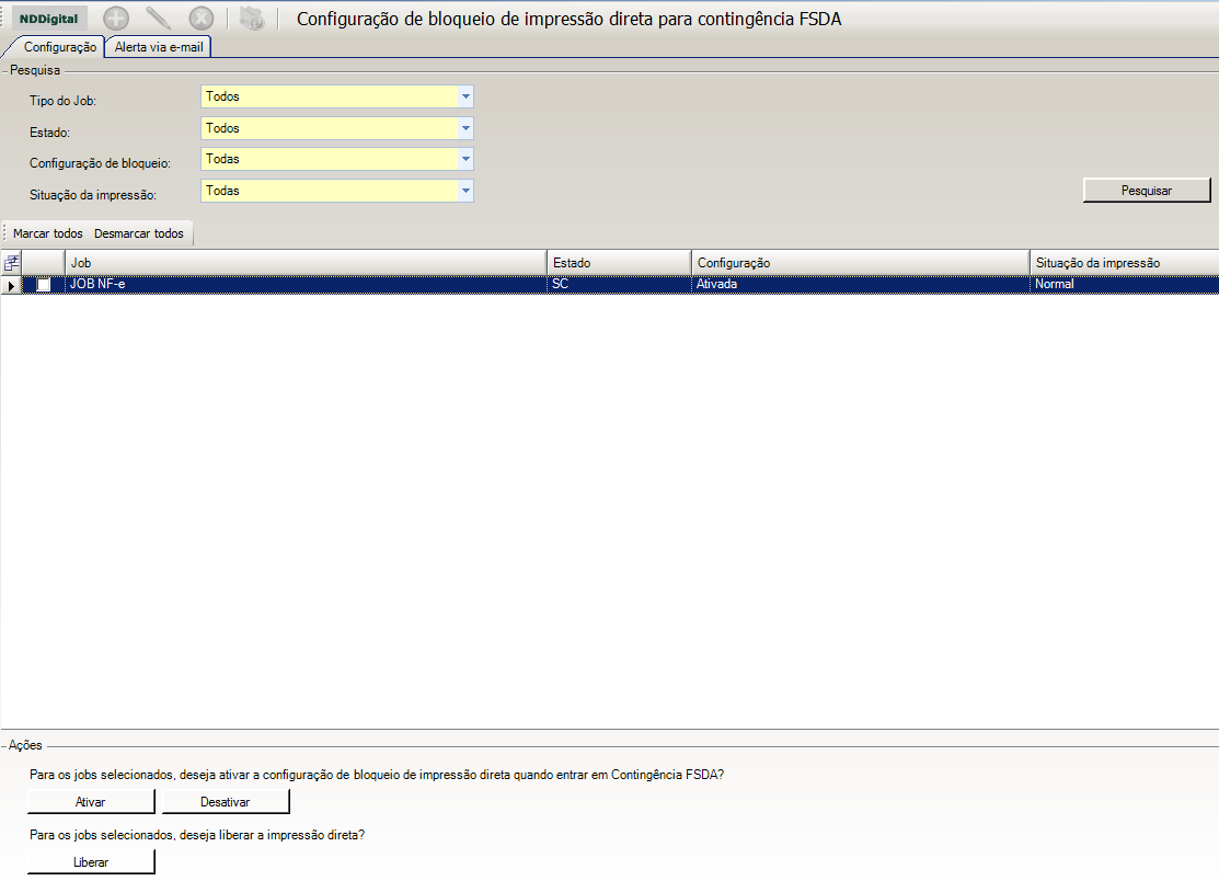 Ao selecionar um JOB e clicar em Desativar não haverá bloqueio ao cair uma impressão em contingência FS-DA, permanecerá normal.