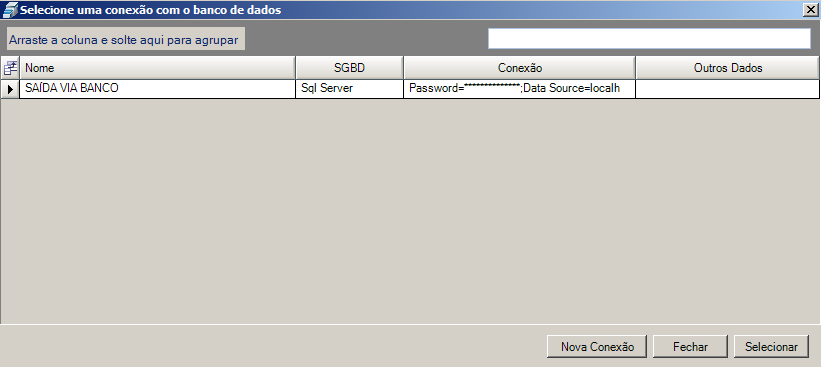 e.Selecione uma conexão com banco de dados pré-cadastrada.