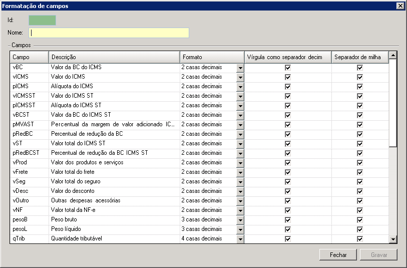 e.Selecione campo a campo o Formato (quantidade de casas decimais).
