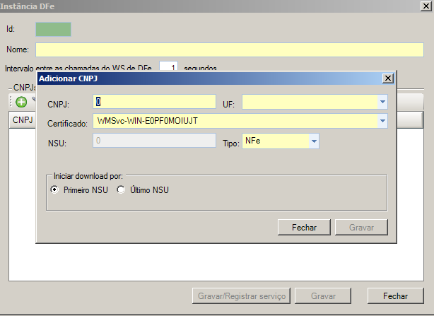 d. A opção "Intervalo entre as chamadas do WS de DF-e" se refere ao tempo de espera entre uma chamada e outra para a SEFAZ. Deve ser informado um valor numérico inteiro, ente 0 à 99 (segundos), possuindo como padrão 1 segundo.