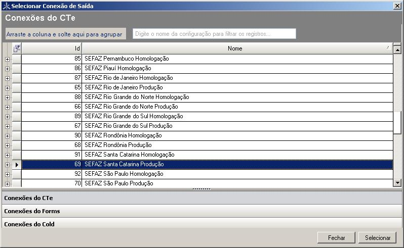 23.Depois de selecionar a conexão de saída CT-e, clique novamente em