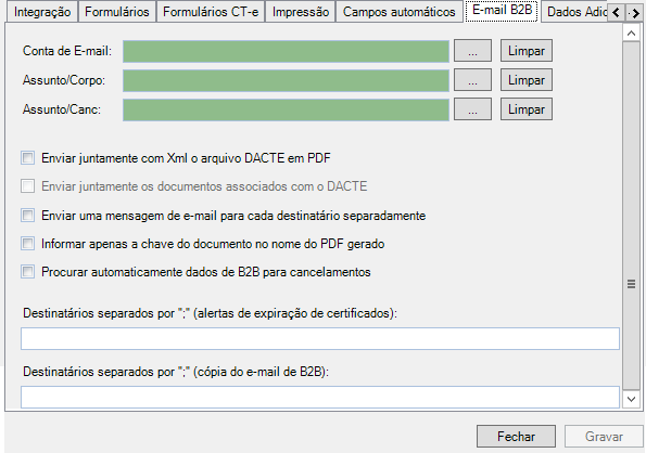 As opções presentes na aba de B2B estão interligadas, verificar cuidadosamente todas as opções marcadas ou selecionadas para o correto recebimento do e-mail com os arquivos desejados. |