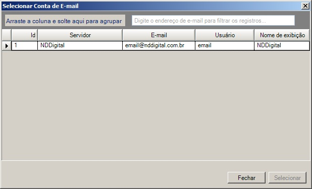 Selecione a conta de e-mail desejada (previamente cadastrada) e clique no botão