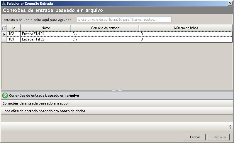 da aba Conexões. Será exibida uma tela contendo todas as entradas já cadastradas.