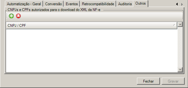 para inserir o CNPJ/CPF do escritório de contabilidade, os quais serão automaticamente inseridos no arquivo de envio, onde poderá ser informado apenas 11 ou 14 dígitos. Nela é possível cadastrar até 10 CNPJ's/CPF's. Caso o valor contido no arquivo for inferior a 10, completará a partir do primeiro CNPJ/CPF cadastrado no Job.