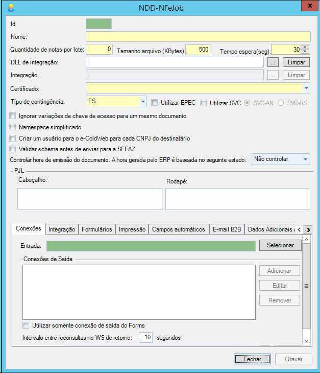 Como está se configurando um Job do tipo NF-e, a primeira conexão selecionada deverá ser a conexão de saída NF-e.