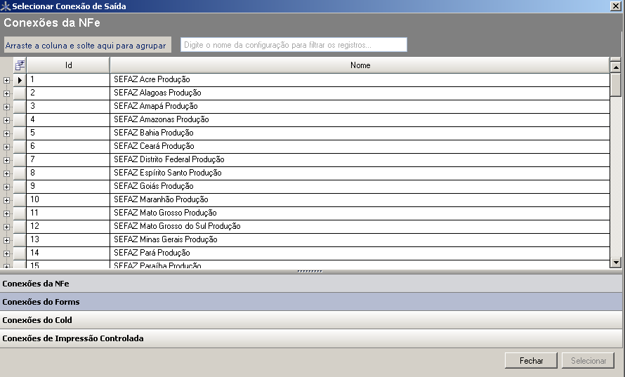 22.Depois de selecionar a conexão de saída NF-e, clique novamente em