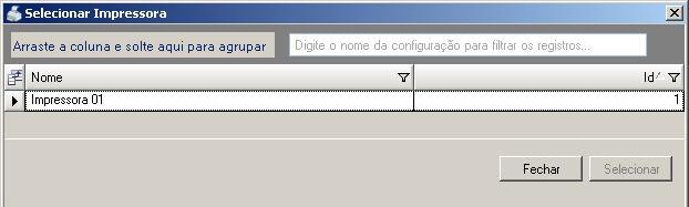 para selecionar a Impressora de Destino. A tela abaixo será exibida com todas as impressoras previamente cadastradas: