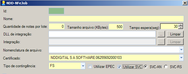 Se a opção Utilizar EPEC estiver marcada no Job: