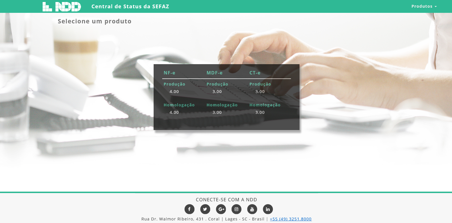 Ao selecionar uma das opções de ambiente para qualquer tipo de documento, será aberta uma nova página contendo os status dos Web Services por estado, conforme imagem a baixo: